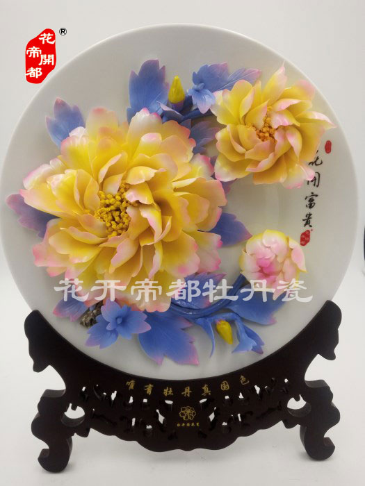 產品系列主要包括:牡丹瓷花盤、牡丹瓷屏風、牡丹瓷盆景、牡丹瓷壁掛和牡丹瓷鼎,形式多種多樣!每一件作品都是藝術的結晶,花、枝、葉均是手工捏制,造型逼真生動。