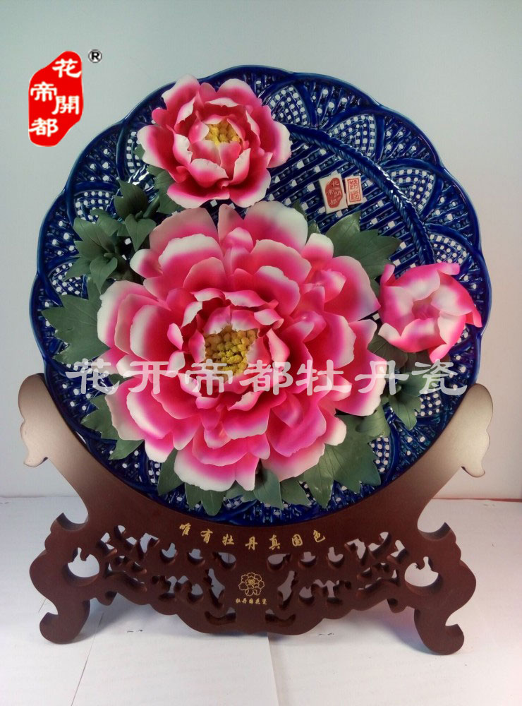 產(chǎn)品系列主要包括:牡丹瓷花盤、牡丹瓷屏風(fēng)、牡丹瓷盆景、牡丹瓷壁掛和牡丹瓷鼎,形式多種多樣!每一件作品都是藝術(shù)的結(jié)晶,花、枝、葉均是手工捏制,造型逼真生動(dòng)。