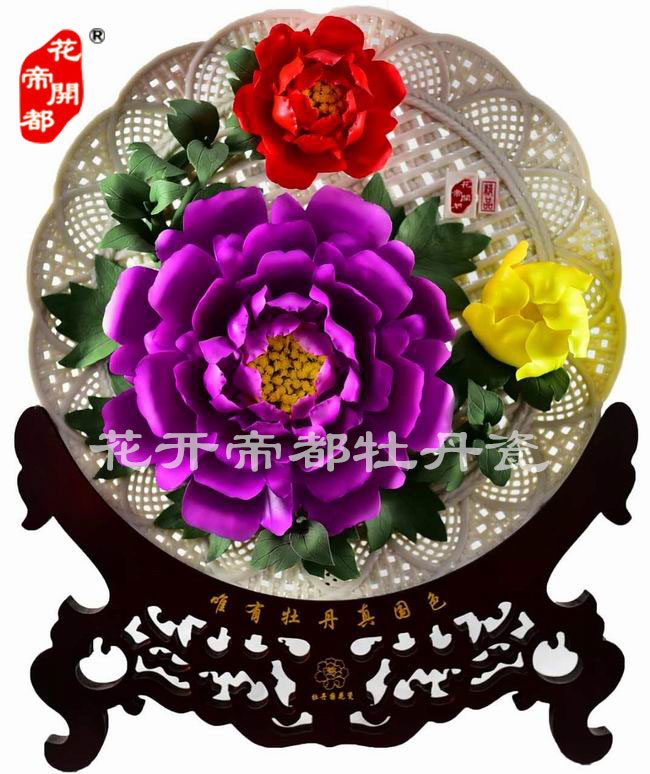 產品系列主要包括:牡丹瓷花盤、牡丹瓷屏風、牡丹瓷盆景、牡丹瓷壁掛和牡丹瓷鼎,形式多種多樣!每一件作品都是藝術的結晶,花、枝、葉均是手工捏制,造型逼真生動。