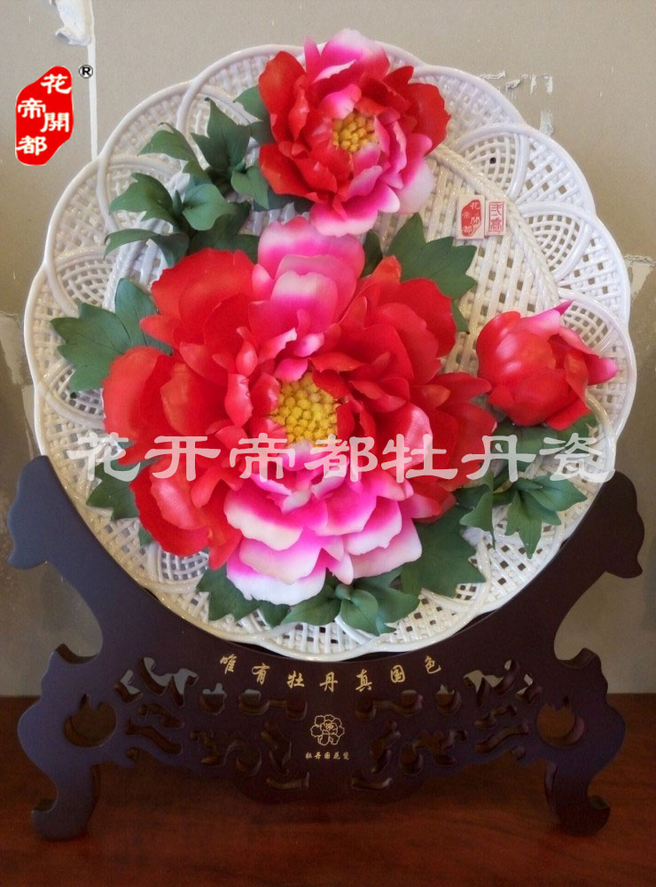 產(chǎn)品系列主要包括:牡丹瓷花盤(pán)、牡丹瓷屏風(fēng)、牡丹瓷盆景、牡丹瓷壁掛和牡丹瓷鼎,形式多種多樣!每一件作品都是藝術(shù)的結(jié)晶,花、枝、葉均是手工捏制,造型逼真生動(dòng)。