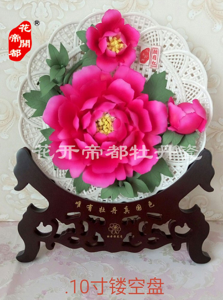 產品系列主要包括:牡丹瓷花盤、牡丹瓷屏風、牡丹瓷盆景、牡丹瓷壁掛和牡丹瓷鼎,形式多種多樣!每一件作品都是藝術的結晶,花、枝、葉均是手工捏制,造型逼真生動。