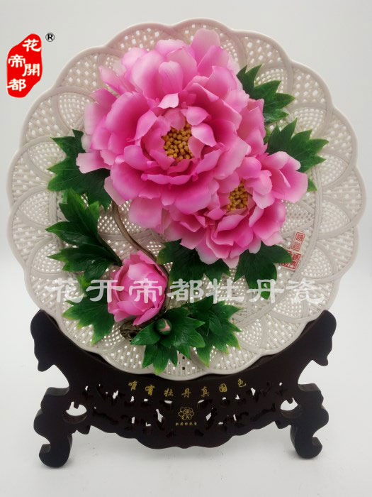 產(chǎn)品系列主要包括:牡丹瓷花盤、牡丹瓷屏風(fēng)、牡丹瓷盆景、牡丹瓷壁掛和牡丹瓷鼎,形式多種多樣!每一件作品都是藝術(shù)的結(jié)晶,花、枝、葉均是手工捏制,造型逼真生動(dòng)。